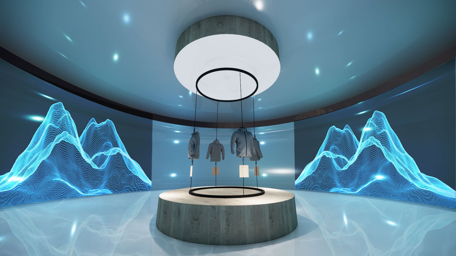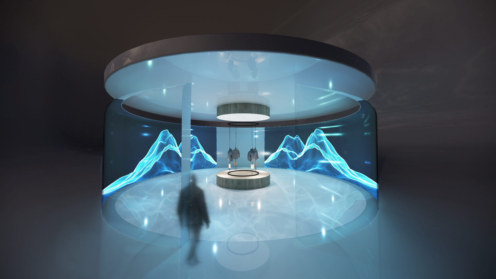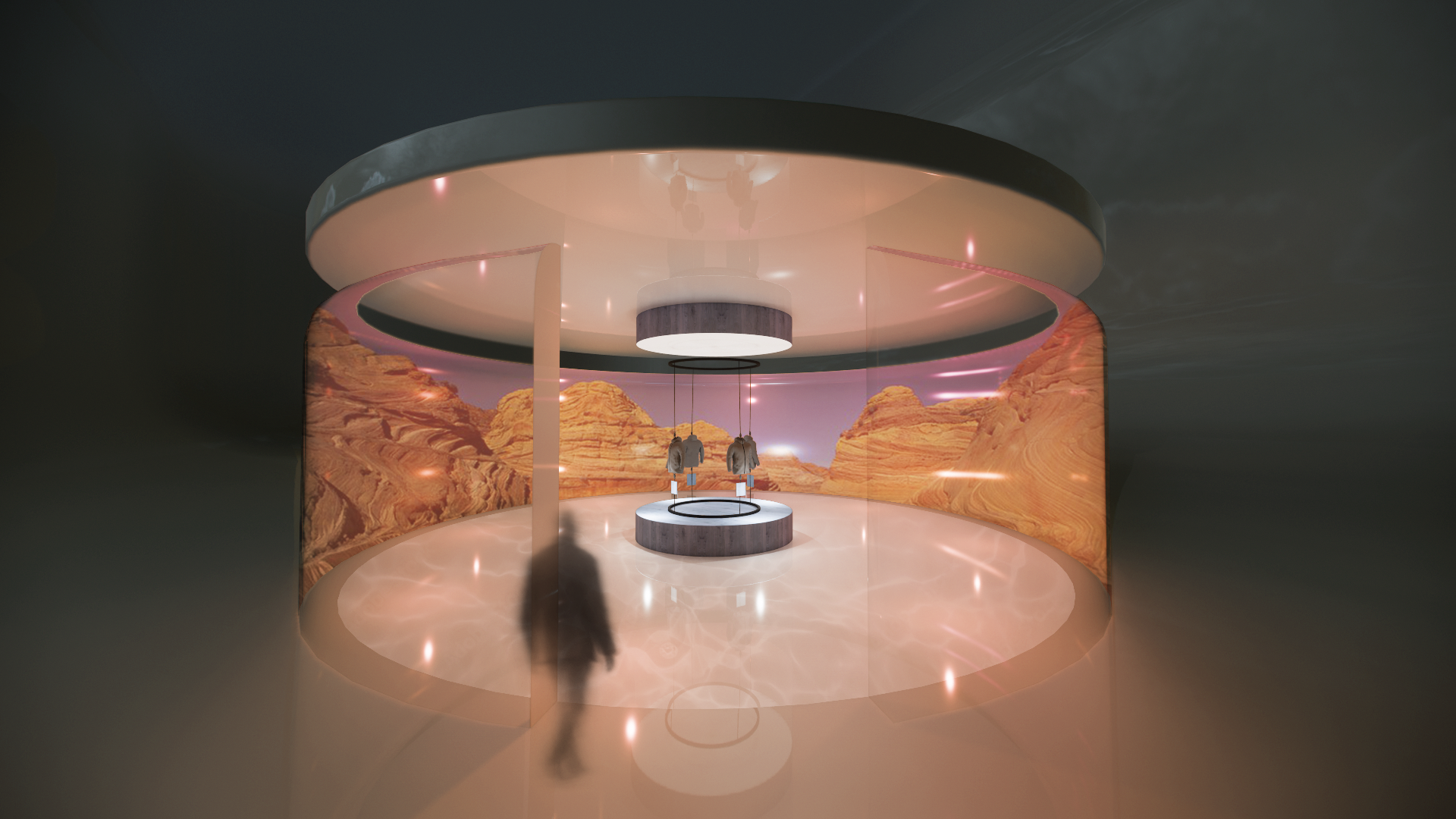 Step inside the rotunda, where transparent digital screens seamlessly shift reality and transport you into another environment.